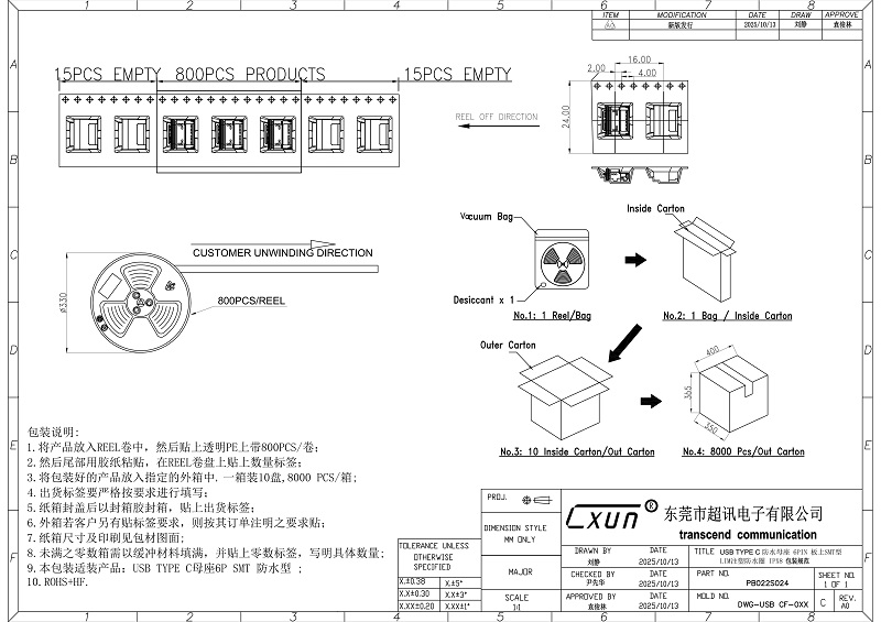 CX019 USB TYPE C 防水母座 6PIN 板上SMT型LIM注塑防水圈IPX8